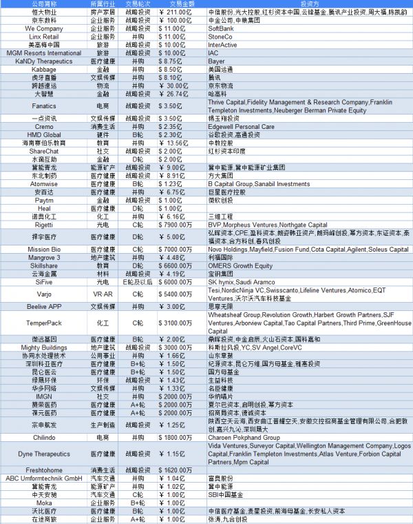 编者按:本周创投市场活跃度较上周有了明显提升,其中并购、战略投资案例占主导。医疗和企业服务行业融资数量持续领先,占总融资数量比重将近30%。值得一提的是,医疗健康行业中的过亿元融资数量也高局榜首。此外,得益于5G技术以及基站的超预期部署,工信部表示,智能制造行业出现回升,接下来将重点支持智慧医疗、虚拟企业专网、智能电网、车路协同车联网等7大领域的5G创新应用。