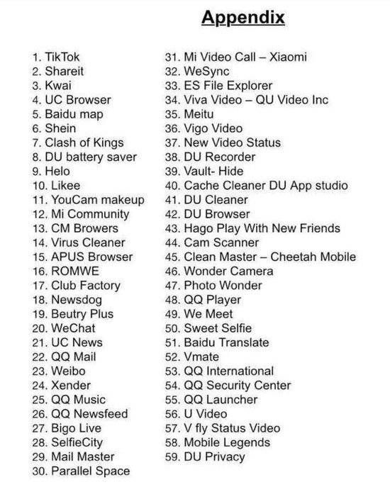 今年6月及7月,印度政府“出于国家安全原因”先后发布59款及47款封禁应用名单,其中包括UC浏览器、TikTok、微信、微博等。近日,印度再将15款中国APP列入黑名单,包括美拍、小米浏览器等。