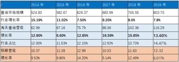 图:老干妈、海天味业、天味食品年营收及增长情况