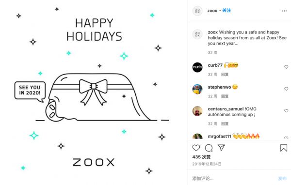 Zoox 在平安夜发布的 Instagram,半年后这家公司被亚马逊全资收购|Instagram