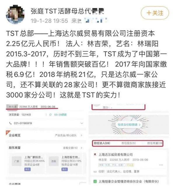 女明星中,创立了微商传奇神话TST的张庭,以46家企业高居榜首。