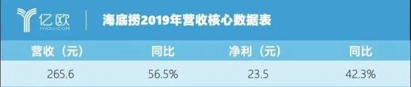 根据海底捞发布2019年年度业绩,全年实现营业收入265.6亿元,同比增长56.5%,实现归母净利润23.5亿元,同比增长42.3% 。海底捞的门店内数量在2016年到2019年里增速非常之快,累计增长592家。如今,海底捞的门店数量达768家。