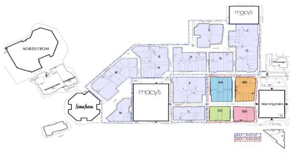 项目整体占地28万㎡,可租面积12.5万㎡,定位高端商业,环境优雅。消费者不仅可以买到包括Hermès、Louis Vuitton、Burberry等国际一线大牌,还可以品尝米其林餐厅、全球特色菜肴。同时,斯坦福购物中心内拥有四个高端连锁百货,分别是Bloomingdale’s、Macy’s、Neiman Marcus和Nordstrom。