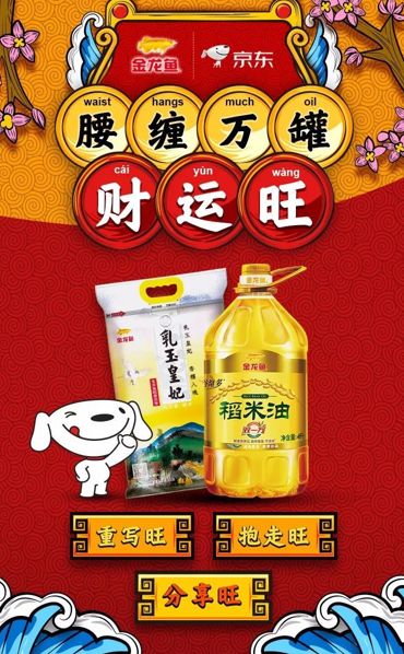 洞察到国人喜欢用社交方式互相祝福和祈愿,2018年,金龙鱼联合京东年货节推出了一个新年H5互动活动,巧妙地把产品卖点藏在互动中的“好运卡”,金龙鱼也在互动中向用户传递 “希望用好的产品给消费者带来更好的生活品质”的品牌内涵,还直接引流到京东页面促成购买。