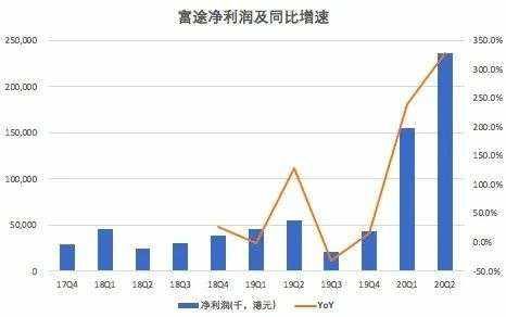 2020年Q2,富途毛利5.3亿港元(约6890万美元),同比增长172%,环比增长43%;实现净利润2.36亿港元(约3130万美元),同比增长327%。