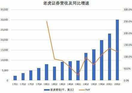 财报显示,老虎证券2020年Q2实现3010万美元的营收,较上年同期的1533万美元,增长121.8%,较上一季度的2319万美元,增长29.8%。