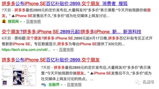 拼多多百亿补贴的效率的一个关键性相关维度是选品的精准度,也就是选择全网热度、传播度最高的商品,在对于不同类型的商品选品给到不同的补贴空间。比如今年iPhone SE刚发布时,一堆网友就艾特拼多多,拼多多也很快公布了百亿补贴价,2899,然后社交媒体里面再形成一轮传播。