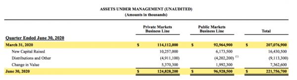 KKR财报显示,截至2020年6月30日,其资产管理规模已高达2218亿美元。