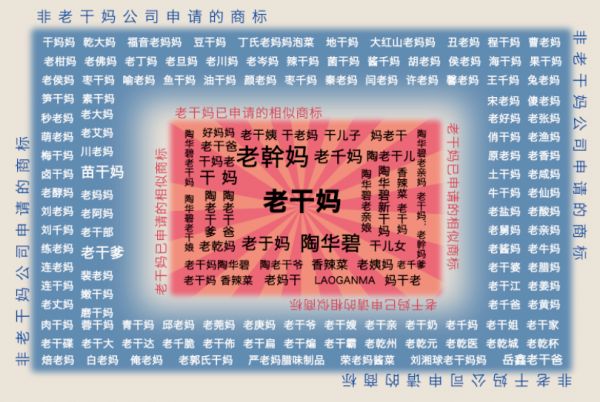 还有热衷建立商标护城河的鼻祖“老干妈”,可以说是商标保护的钻石级选手,并且老干妈注册的近似商标每年都在扩充。