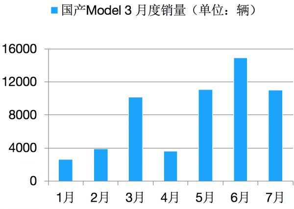 全国乘用车市场信息联席会数据显示,国产Model 3的1月销量达2620辆,2月销量为3900辆,3月有10160辆,4月销售3635辆,5月为11095辆,6月达14954辆,7月则拿到11014辆——高居中国新能源汽车销量榜首,并超越第二到第四名的总和,且在诸多一线城市以远超第二名的销量领跑大多数燃油车。