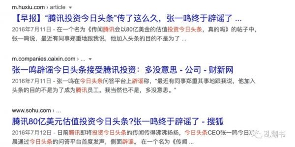 你看,这里张一鸣只是说加入头条不是为了成为腾讯员工,报道是不属实的传言,没有把话说死。但在后来的传播里面,就变成了张一鸣辟谣腾讯投资今日头条。