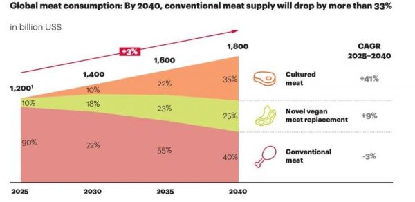 根据咨询公司 AT Kearny 最近的分析,到 2040 年,全球传统肉类消费量可能下降 33%。
