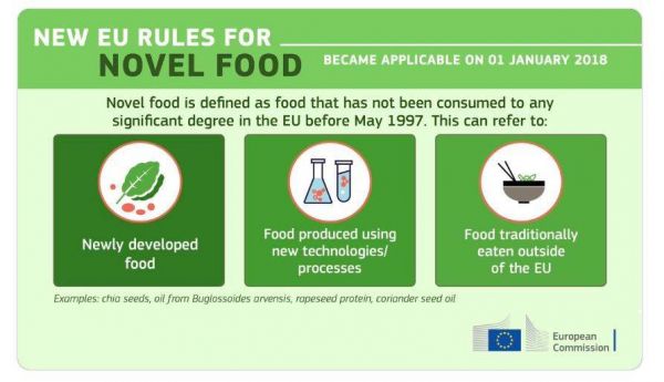 欧盟关于新食品的新规定,从2018年1月起生效,其中“新食品”包括新开发出来的食品,用新科技研发出的食品,以及欧洲以外地区食用的食品