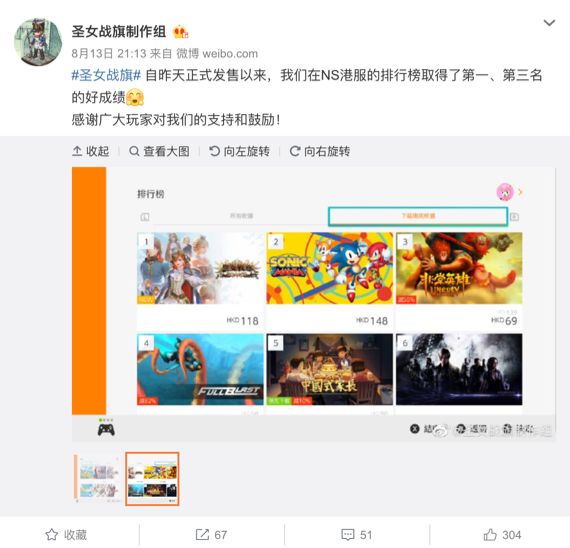 而任天堂一届一届的Indie World,还有许多国内外的优质独立作品纷纷移植的决定,也都说明了大家其实很买这个“随时随地都能玩”的帐。比如前一阵子国内的《圣女战旗》,就在Switch港服取得了不错的成绩,而上面提到的《蔚蓝》,干脆开发者都直言Switch版是销量最高的版本。