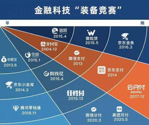 不断有后来者入局,苏宁、京东、百度、平安、万达、国美、小米……与花呗、借呗竞争消费金融赛道的,有京东白条、百度有钱花、腾讯微粒贷、京东金条、苏宁任性付等。和余额宝对标的,也有京东小金库“零用钱”、百度余额盈,乃至后来的微信零钱通。