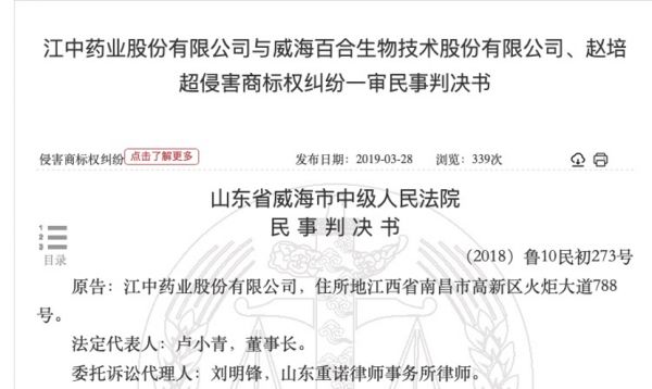 值得注意的是,百合生物的合同生产业务主要服务中小客户,他们往往管理不规范,经营不稳定,会影响到百合生物的名声。一个典型的例子是,2018年,百合生物因为替太和县江中优品医药科技有限公司生产标有“江中”字样的“褪黑素维生素B6胶囊”,被江中药业因侵犯商标权告上法庭,并被判决停止侵害,与太和县江中优品医药科技有限公司一起赔偿20万元。