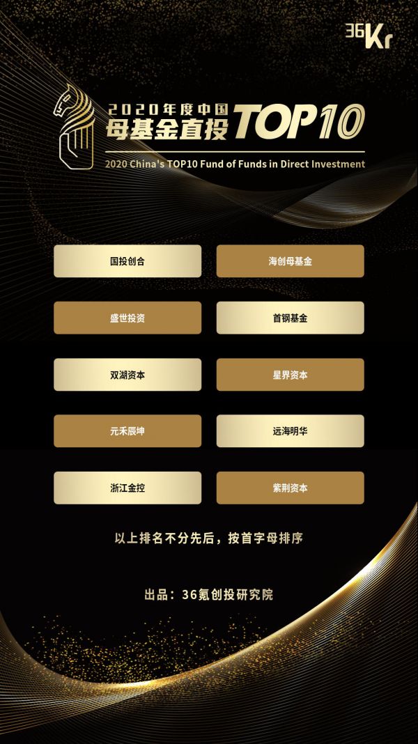 重磅!36氪联合50家LP,“中国最受LP认可投资机构”暨“中国黑马基金10强”榜单发布