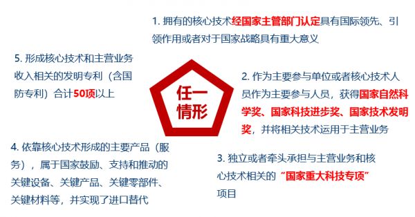 从科创板的角度来说,核心是科技驱动,更多关注拟上市企业核心技术以及科技创新能力,特别是技术是不是属于面向世界科技前沿、面向经济主战场、面向国家重大需求。