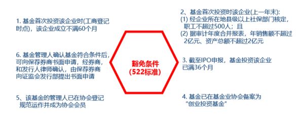 如果基金要申请适用2020年减持特别规定相关的减持优惠政策,在被投企业层面,要求首次接受投资时,符合下列三项条件之一:(1)首次接受投资时,被投企业成立不满60个月;(2)符合522标准:首次接受投资时,员工人数不超过500人,合并本年销售额不超过2个亿,资产总额不超过2亿;或者(3)被投企业在IPO申报的时候已经取得高新技术企业证书。