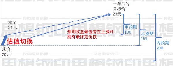 投资者想要把握估值切换的时机,首先就要知道,估值切换是如何产生超额利润的呢?