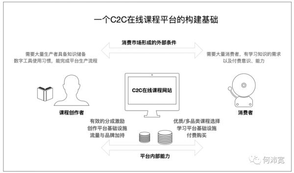 我们曾详细探讨过C2C学习平台的模式,以及它所需的社会环境,可视图如下: