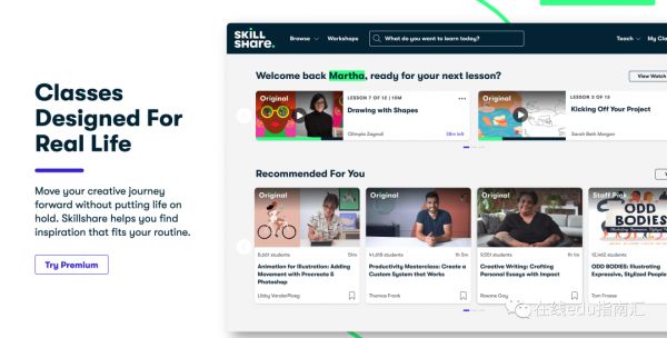 Skillshare平台,它与国内“B站”的模式是相似,可以说是学习领域的“B站”: