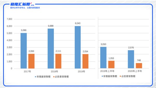 肯德基是第一个进入中国的全球主要餐饮品牌,于1987年进入中国市场。根据弗若斯特沙利文报告,按2019年系统销售额计,肯德基为中国领先及最大的快餐品牌。截至2020年6月30日,肯德基在中国1400多个城市经营超过6700家餐厅。