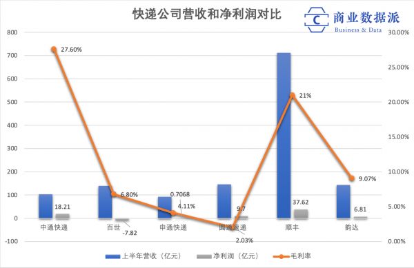 为了争抢市场份额,多家快递公司都在努力,不惜大打价格战,对顾客和合作伙伴进行高额补贴。不过,尽管如此,中通快递的毛利率仍然达到了全行业最高的水平,上半年达到了27.6%的水平,甚至比顺丰还要高出6.6个百分点。