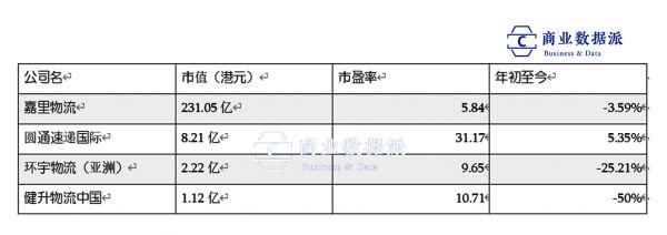 目前在香港上市的物流股有嘉里物流、圆通速递国际(06123.HK)、环宇物流(亚洲)(06083.HK)等,但这些公司的股价和市值都非常低迷,以物流股板块龙头嘉里物流来看,年初至今股价累积下跌3.59%,尽管相对恒指年初至今的表现来说,算是一个比较平稳的表现,但从股价和市盈率都不难看出,香港资本市场并不喜欢物流股。