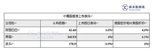 另一方面,尽管中概股的回归,确实让香港资本市场出现了一定程度的火热,随着阿里巴巴、网易、京东的回归,认购场面确实异常火爆,都出现了大比例超额认购的情况,但上市首日也曾出现破发的情况,京东(09618.HK)在上市之日,收盘价就低于发行价的6.9%。
