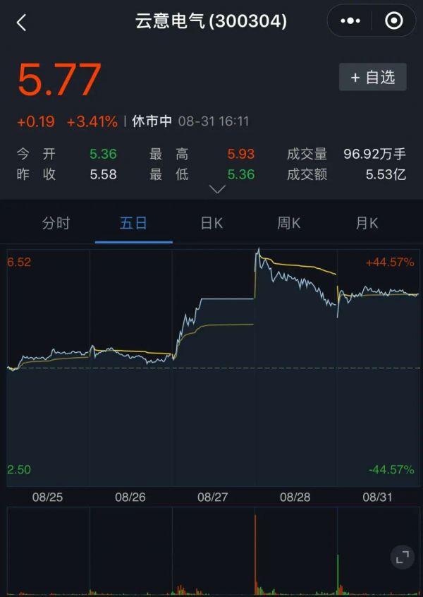 图片来源:云意电气股价截图