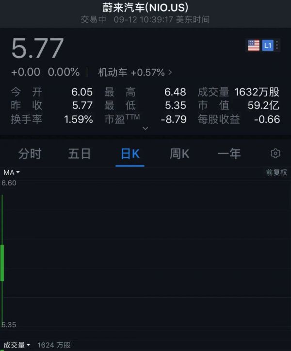 图片来源:蔚来汽车股价截图(美东时间2018年9月12日)