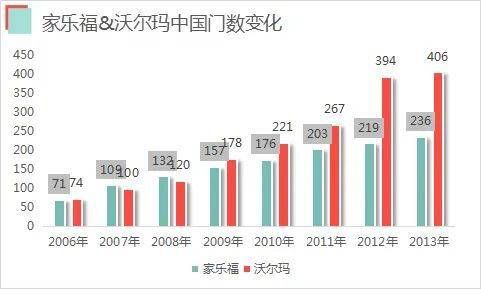 Tesco“卖身”求生,沃尔玛、家乐福在中国电商大潮冲击下,日子亦不如从前淡定。沃尔玛从2013年前后开始“大开大关”,而家乐福于2013年门店达236家后,扩张几乎停滞。