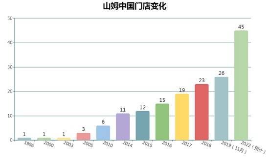 山姆捕捉到风向的变化,近年来明显加快拓店步伐。原来,山姆开一家新店“可能需要3年~7年”,但2017年之后加快为平均一年3家~4家店。2019年11月,沃尔玛中国地产发展高级副总裁顾建章表示,“目前山姆有26家门店,预计到2022年山姆新开以及在建门店有45家。”