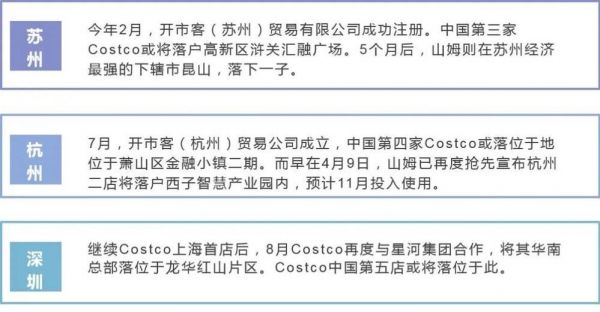 上海,只是山姆与Costco交锋的起点,此后二者在苏州、杭州、深圳,亦呈现“你追我赶”之势。与此同时,外资商超在付费会员制领域竞争日趋激烈。