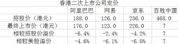 百胜中国是第四家回归港股的中概股,前三家中概股分别为阿里巴巴、网易和京东。从此前三家回归中概股的情况看,最终的发行价都会较最高价发生下折,也会较当日美股收盘价发生下折,投资者可以直接购买美股,并无必要参加港股申购。