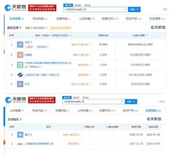 股东成员方面,糜云飞、上海挚信投资管理有限公司退出股东行列,豆网科技最大股东变更为李亚飞,李亚飞现持股比例为96.08%;此外,新股东还包括宁波梅山保税港区挚美五期股权投资合伙企业(有限合伙)、上海世纪出版(集团)有限公司。