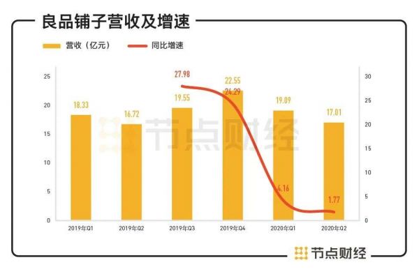 据财报显示,2020年上半年,良品铺子营业收入为36.1亿元,同比增长3.02%。其中,一季度为1908.93万元,同比增长4.16%,二季度为1701.38万元,同比增长1.77%。