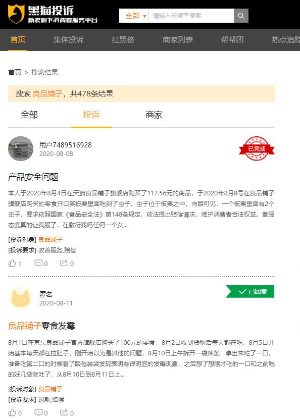 走“高端”路线,除了售价、包装的高端化,品质的“高端化”才是真正的压舱石。反观良品铺子,食品质量上有待商榷。