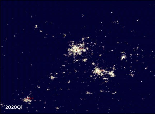 京津冀2020年1季度与2季度夜光影像对比 数据来源:望眼科技