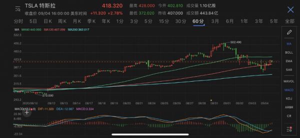 特斯拉宣布拆股后价格走势