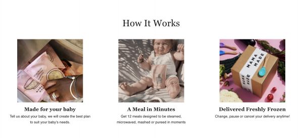 2019 年 3 月,位于英国伦敦的「Mamamade」,由 Sophie Meislin Baron 成立。它打造了健康自制的婴儿营养餐,并且提供了送货上门服务。该公司旨在培育健康的新一代孩子,同时帮助父母节省更多的时间,从而有精力去陪伴孩子们。