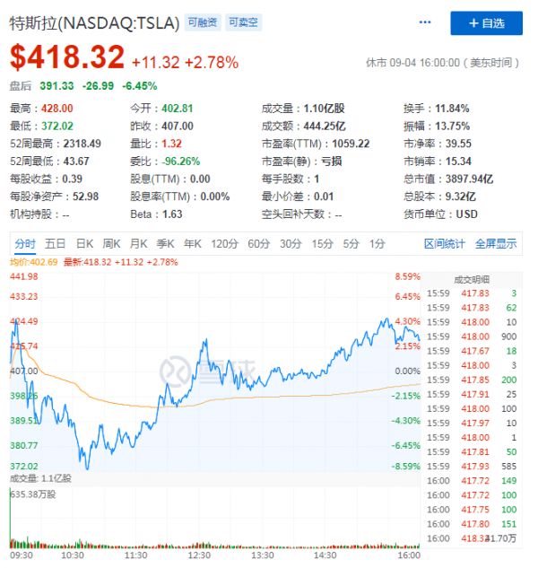 获纳标普,特斯拉成交额暴增成美股“一哥”