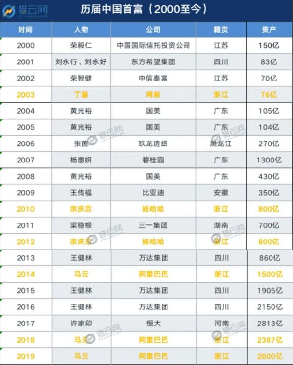 过去的20年内,有7年中国首富的位置上坐着浙江人。不仅有人人熟知的互联网大佬马云、丁磊,还有钟晱晱的老朋友宗庆后。