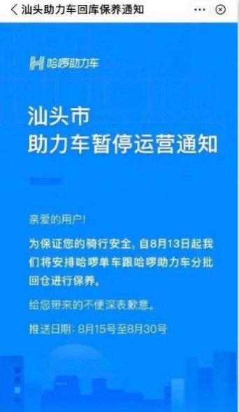 但是从8月中旬开始,市里的哈啰、青桔等共享单车品牌却突然发布公告,表示共享单车要全部回仓和保养。也就是说,他突然骑不到单车了,这让他感到极大的不便。