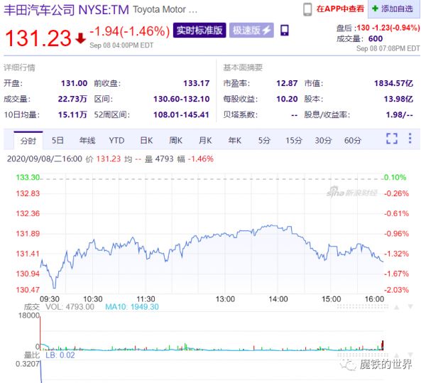 在特斯拉的暴跌面前,当天传统汽车巨头丰田汽车的跌幅可忽略不计。