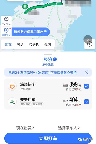 反观三四线及其以下的下沉市场情况则乐观得多。一方面,下沉市场具有足够的增量空间,按照当前3400亿的网约车市场规模计算,下沉市场不足10%的网约车市场渗透率,至少还有2000亿的增量空间;另一方面,下沉市场竞争较一二线城市要小得多,更利于市场的规模化拓展。做一个简单的实验,作者在新一线城市用高德地图的聚合打车功能会同时向18多家平台发送订单需求,而另一个朋友在当地镇上打车就只有2种可选,由此可见下沉市场的竞争之小。