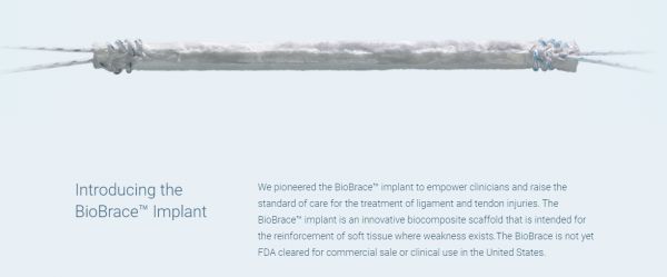 目前,BioBrace™ 植入物处于开发阶段,尚未获得包括美国食品和药物管理局(FDA)在内的监管机构的批准,因此暂时不能进行商业销售或者临床使用。