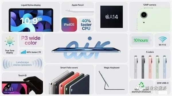 北京时间 9 月 16 日凌晨1点,苹果在2020年秋季发布会上公布iPad Air 4和 AppleWatch 6等一系列新品, iPhone12系列缺席。全场唯一亮点是A14芯片,全球首发5nm制程芯片,集成118亿个晶体管,6核CPU、4核GPU、16核神经网络引擎。