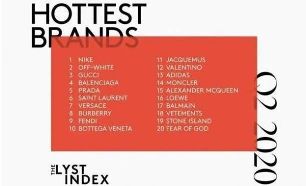 ■ 2020年Q2全球热门品牌榜单 来源:Lyst